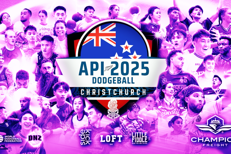 A banner package for the 2025 API Dodgeball Event in Christchurch.